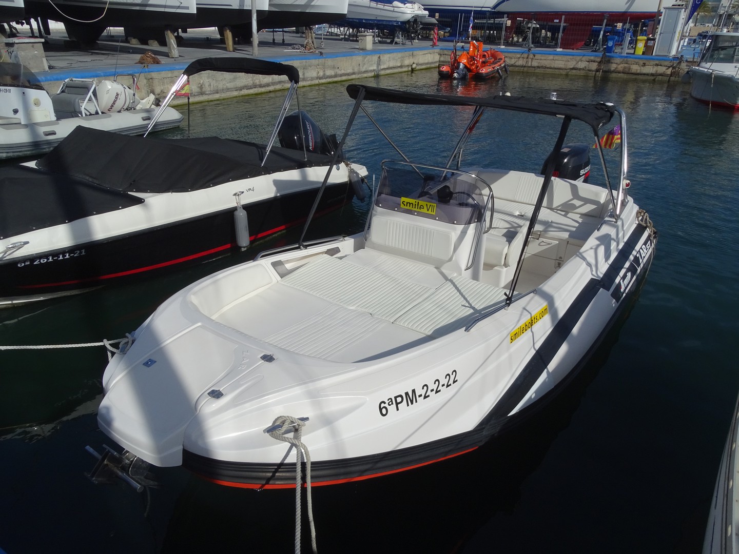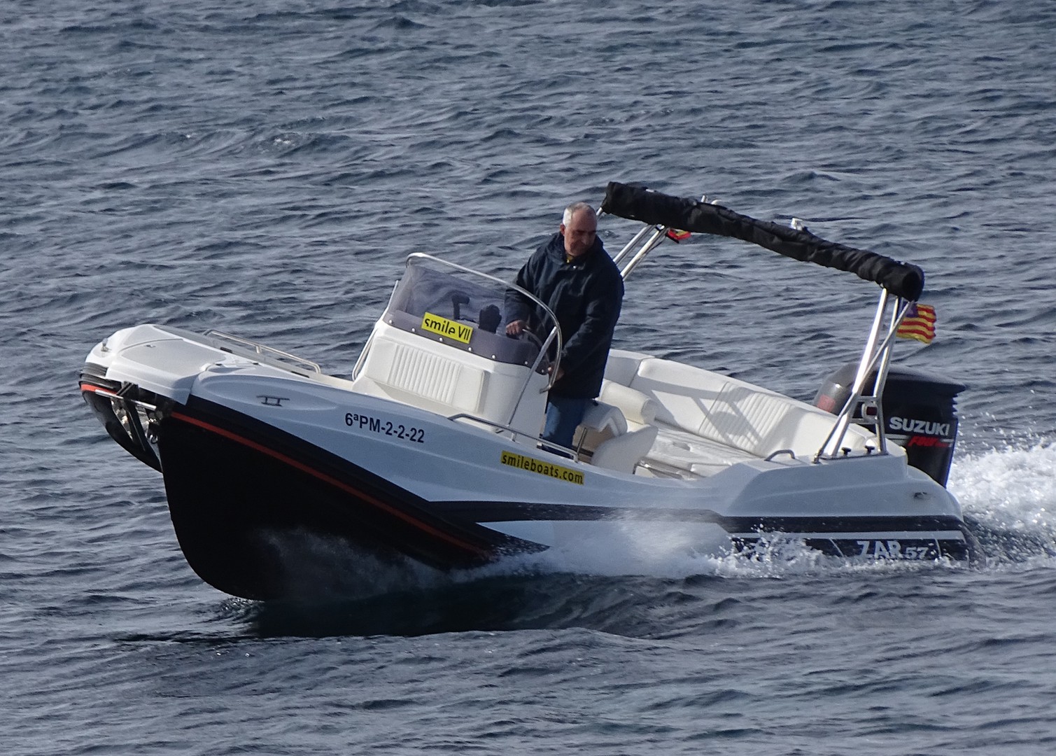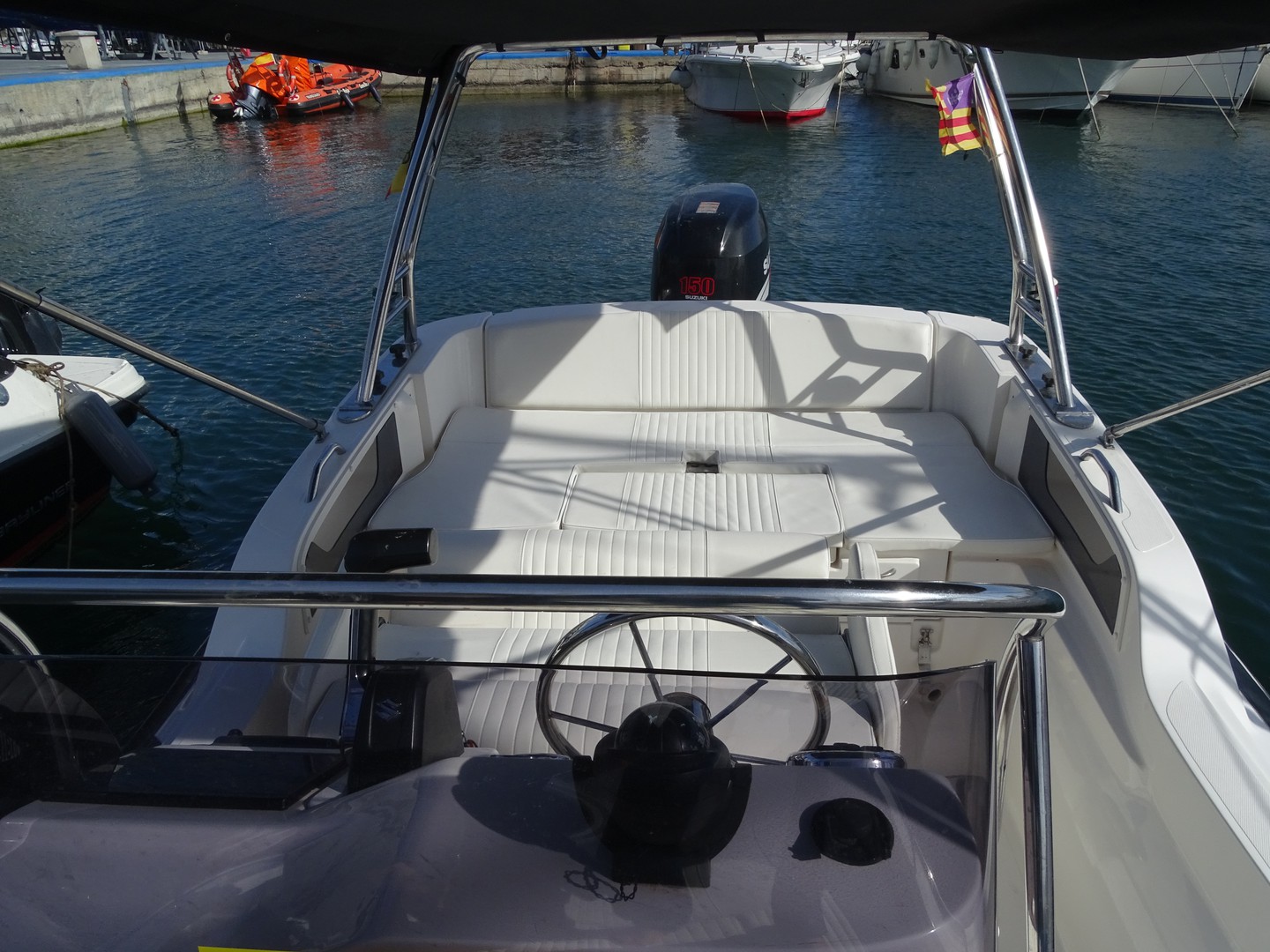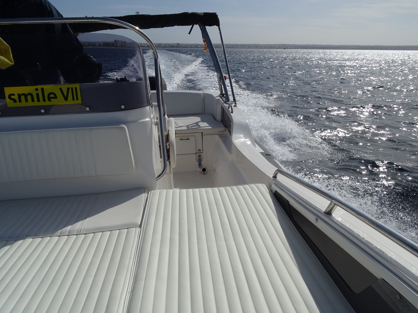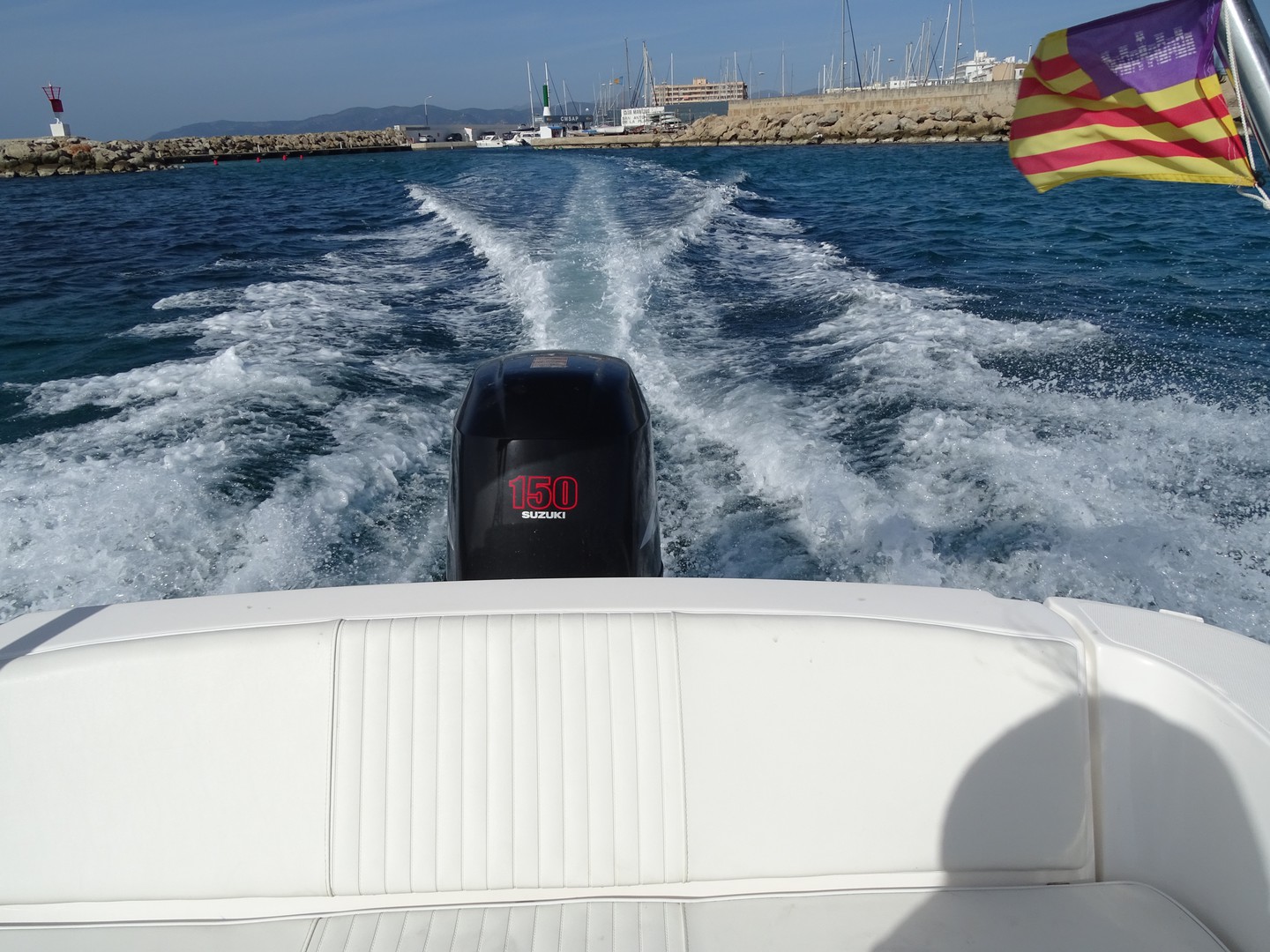 With Suzuki 150 hp 4 strokes. Possibly the best in its length. For family outings, up to 8 pax with comfort and safety to discover the beaches of the Bay of Palma and much more. With electric anchor windlass, freshwater shower, everything for sun, drag point for wake and donut, music, GPS/plotter, solarium in bow and stern, it is a great, comfortable and fast boat equipped with all the necessary extras to spend a memorable day at the sea.