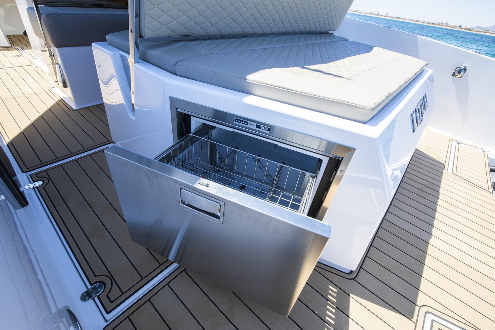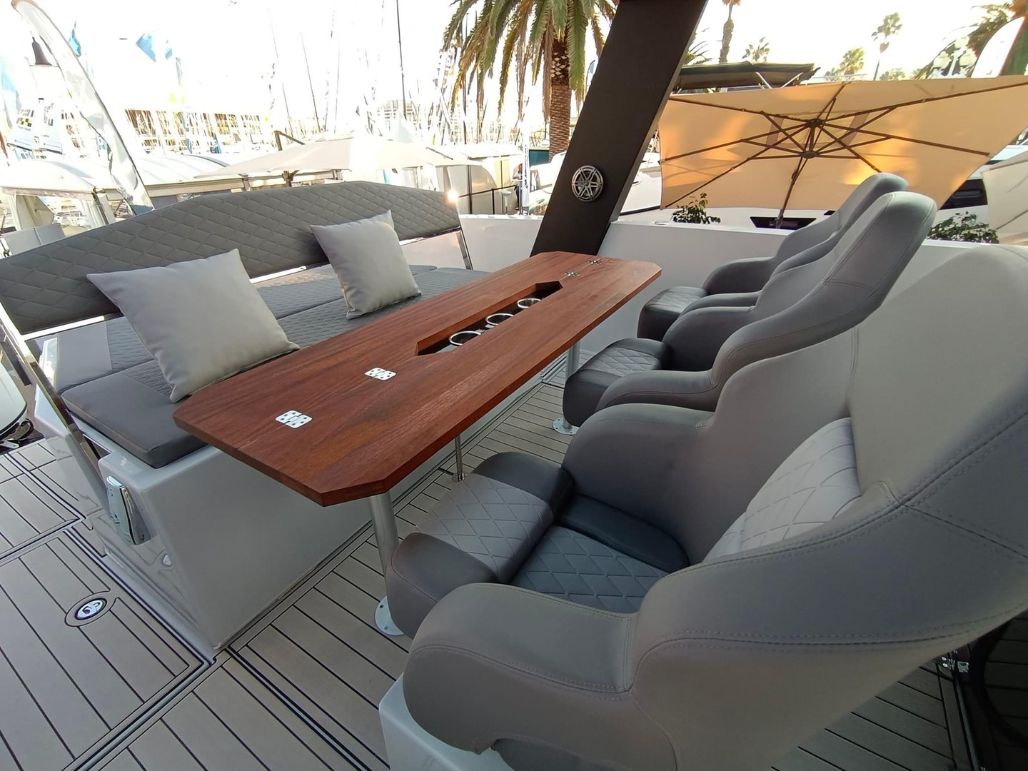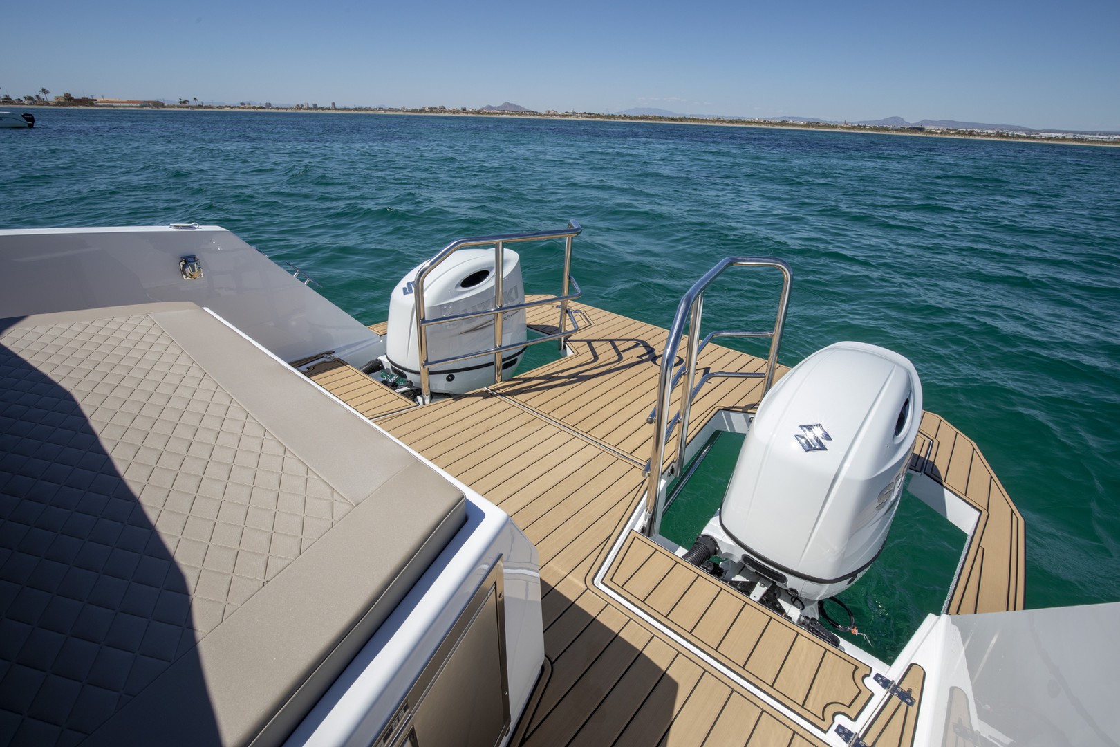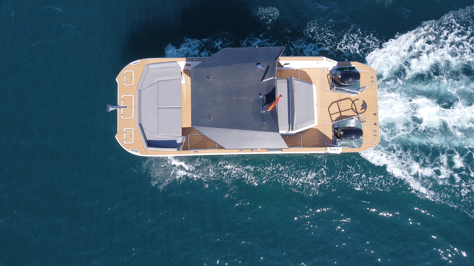 For being a catamaran it is not slow at all, it can develop an average speed of about 20 knots with total comfort at a reduced consumption, thanks to its efficient hull.